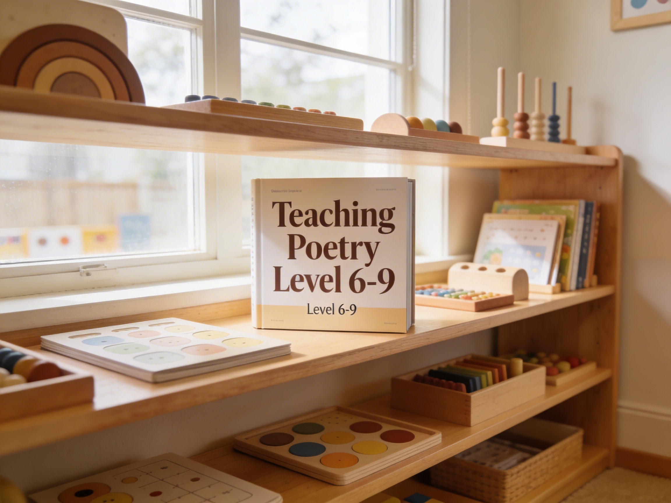 The Teaching Poetry Level 6-9 material introduces young children to the beauty and rhythm of language through carefully selected poems and structured activities. This comprehensive language material supports the development of phonetic awareness, vocabulary enrichment, and early reading skills through engaging poetic exercises. Designed to complement the Montessori language curriculum, it provides a systematic approach to exploring rhyme, meter, and linguistic patterns.