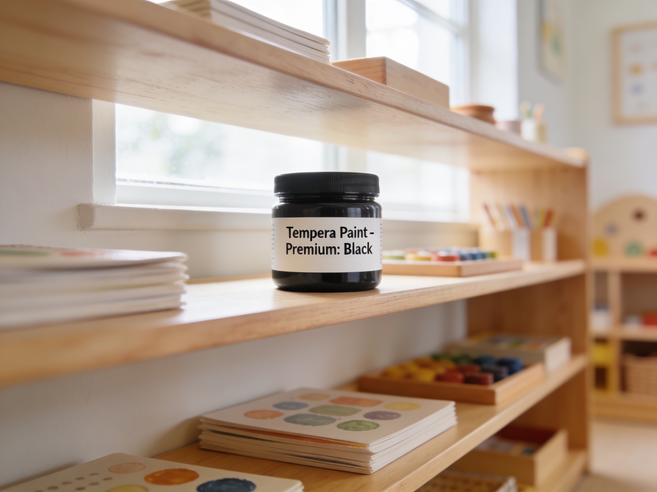 The Tempera Paint - Premium: Black is a Educational Materials Montessori material designed for children aged 3-6, crafted by Nienhuis Montessori to AMI standards.