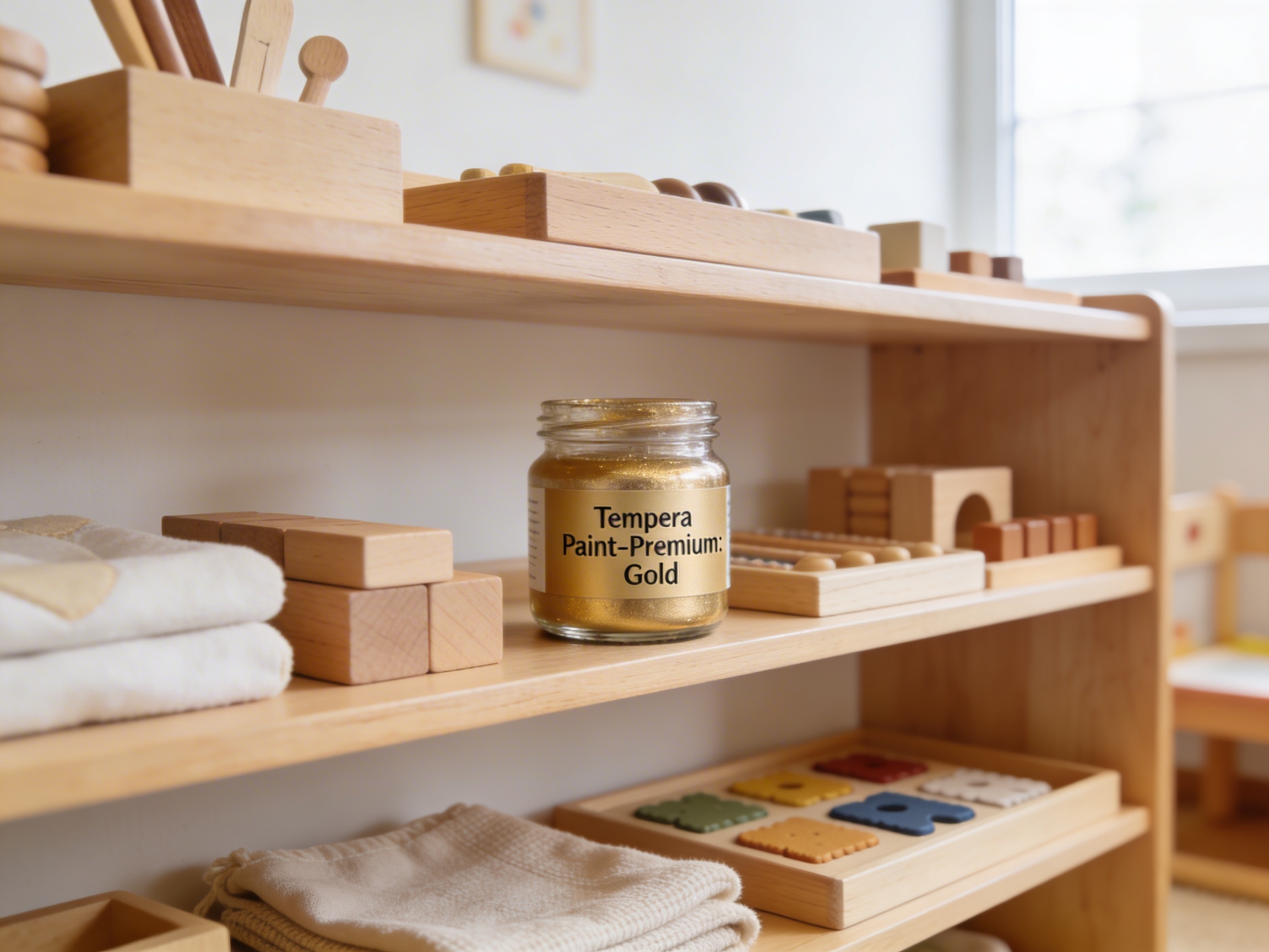 The Tempera Paint - Premium: Gold is a Educational Materials Montessori material designed for children aged 3-6, crafted by Nienhuis Montessori to AMI standards.