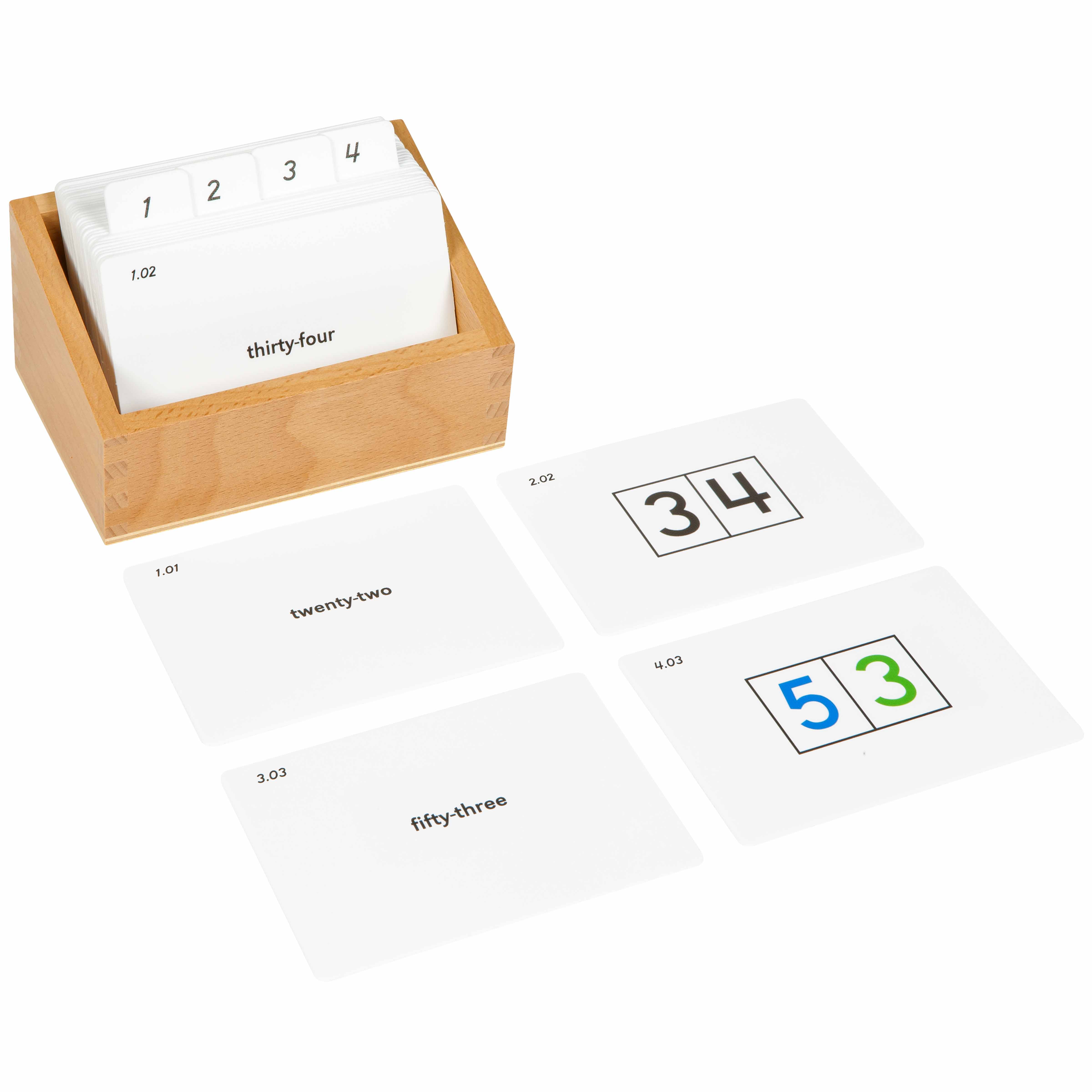 “Store tens cards and unit cards in separate compartments within the wooden box for easy sorting”