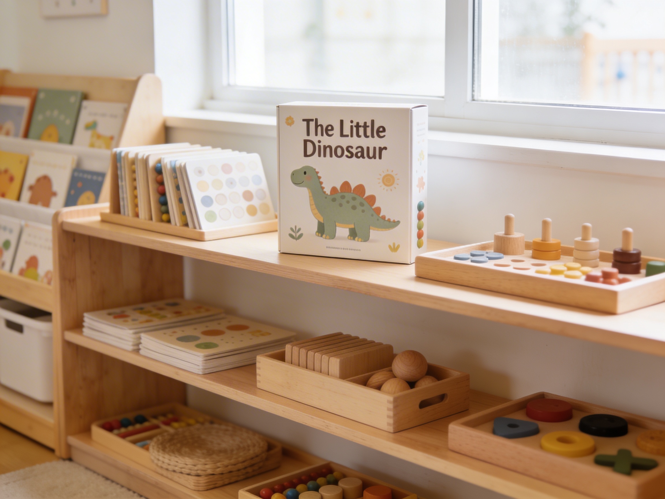 The Little Dinosaur introduces prehistoric life through photorealistic illustrations that capture children's natural fascination with these ancient creatures. In Montessori education, we recognize that children between three and six years old possess an absorbent mind eager to categorize and understand their world - The Little Dinosaur's detailed imagery of various species satisfies this developmental need for classification. The 21×28cm format creates a visual experience large enough for small groups to gather around during presentations, yet manageable for individual exploration. Each dinosaur illustration becomes a concrete representation of abstract concepts like time, extinction, and evolution, making these complex ideas accessible to young minds. The photorealistic quality of The Little Dinosaur respects children's need for accurate, beautiful materials that honor their intelligence. By presenting dinosaurs in their natural habitats rather than as cartoon characters, this educational material bridges the child's imaginative play with genuine scientific learning, fostering both wonder and intellectual rigor.
