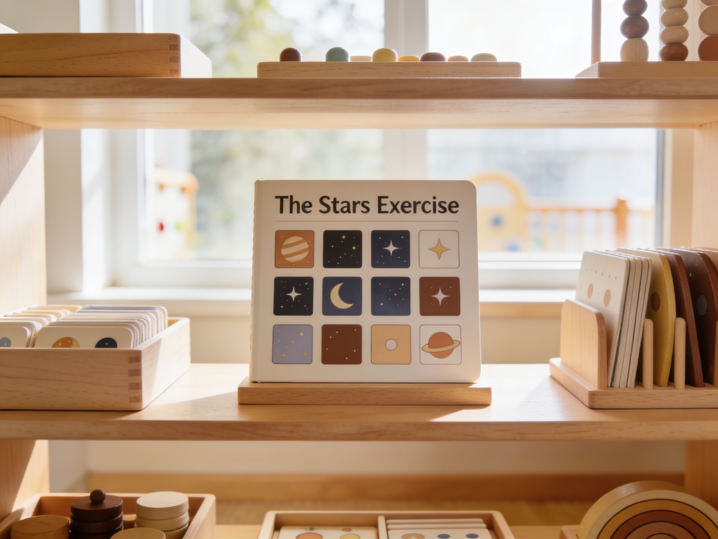 The Stars Exercise fits perfectly within the Montessori cultural studies area, bridging geography and science. It provides concrete, manipulative experiences with abstract concepts, follows the principle of isolation of difficulty, and connects children to their place in the universe through hands-on exploration.