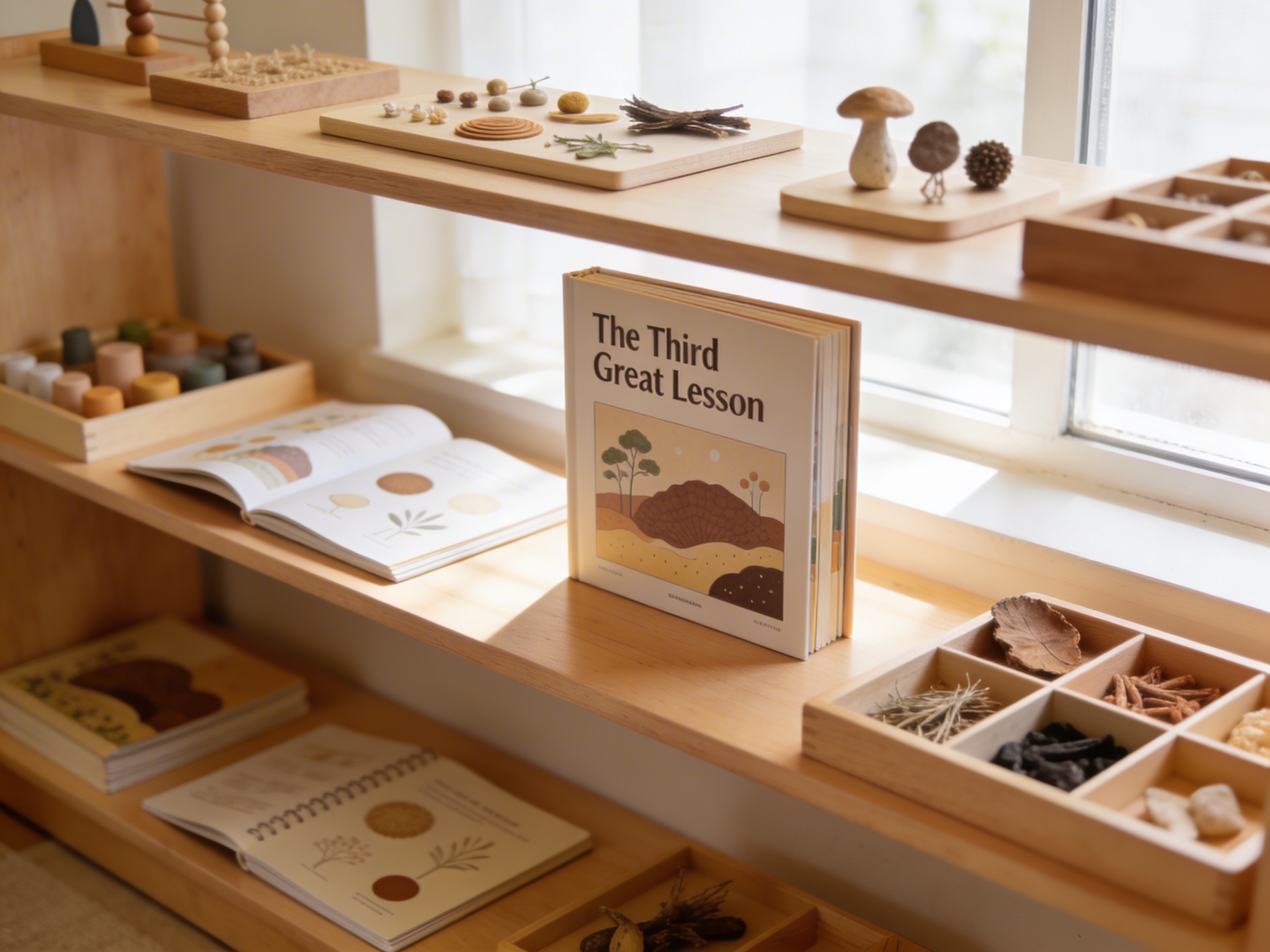 The Third Great Lesson introduces children to the timeline of life on Earth through engaging narrative and visual materials. This comprehensive educational set supports the Montessori cultural curriculum by presenting the story of evolution from single-celled organisms to complex life forms, fostering wonder about natural history and our place in the universe.