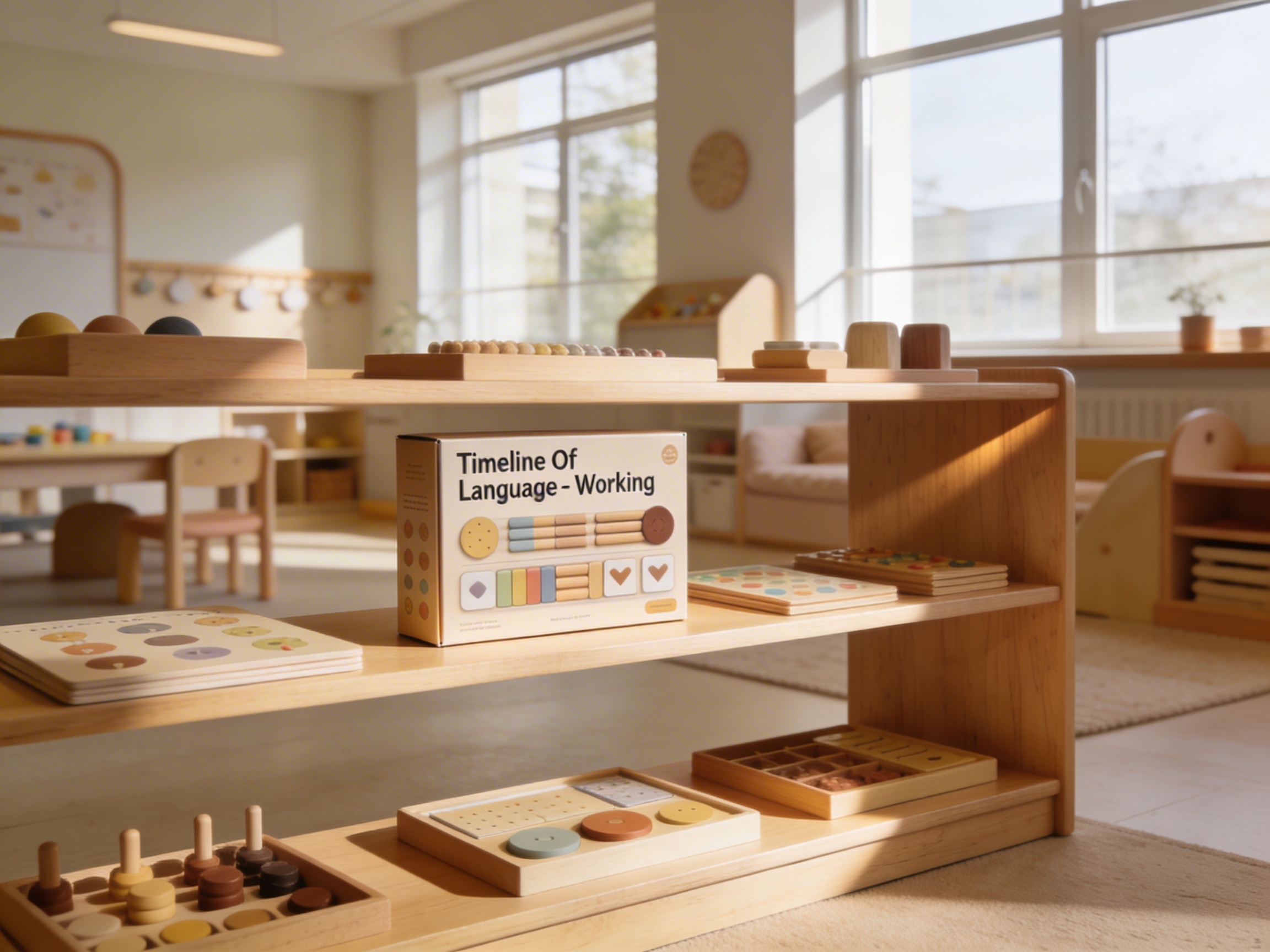 The Timeline of Language - Working material is an advanced Montessori resource that guides children through the evolution of human communication, from prehistoric symbols to modern alphabets. This comprehensive timeline helps children understand how written language developed across cultures and civilizations, fostering appreciation for literacy and cultural diversity. Perfect for elementary environments, it provides a visual and tactile exploration of humanity's greatest achievement: the development of written communication.