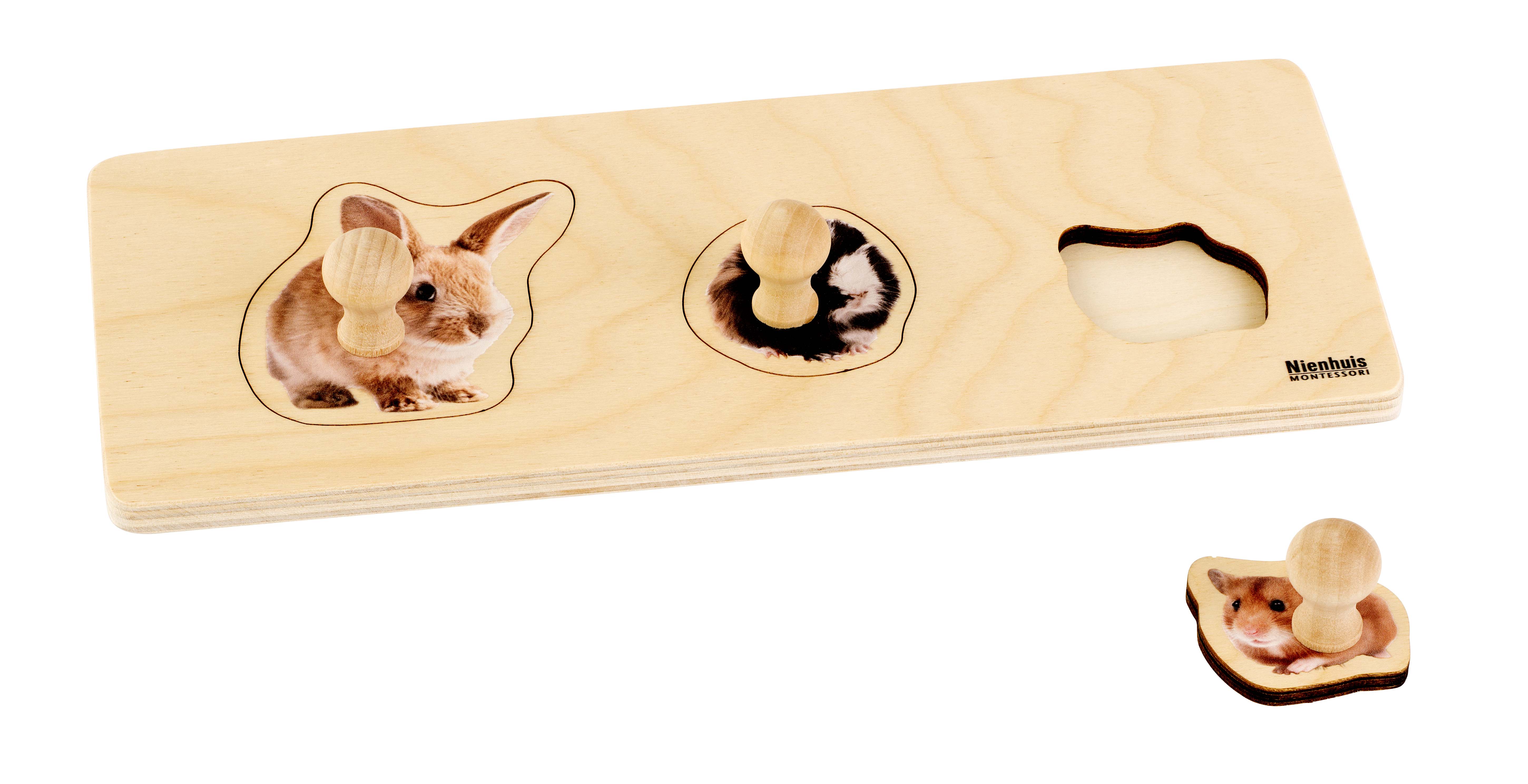 The Toddler Puzzle: 3 Rodents is a Infant & Toddler (0-3) Montessori material designed for children aged 0-3, crafted by Nienhuis Montessori to AMI standards.