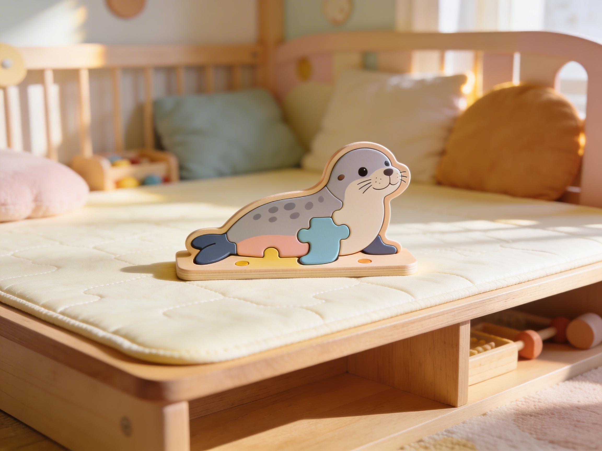 The Toddler Puzzle: Seal represents a precise entry point into spatial reasoning for the youngest members of the classroom. This single-piece seal puzzle with its large knob handle isolates one specific challenge: fitting a whole form into its corresponding space. The wooden puzzle's oversized knob accommodates the palmer grasp that toddlers naturally use before developing pincer control. By featuring a realistic seal photograph, this puzzle connects the child's growing awareness of animals to their developing hand-eye coordination. The seal shape offers gentle curves that guide small hands through successful placement, building confidence through achievable complexity. Unlike multi-piece puzzles that overwhelm, this single seal piece allows complete focus on the fundamental skill of matching shape to space. The puzzle's simplicity honors the toddler's need for repetition - they can remove and replace the seal piece dozens of times, each successful completion strengthening neural pathways for spatial perception.
