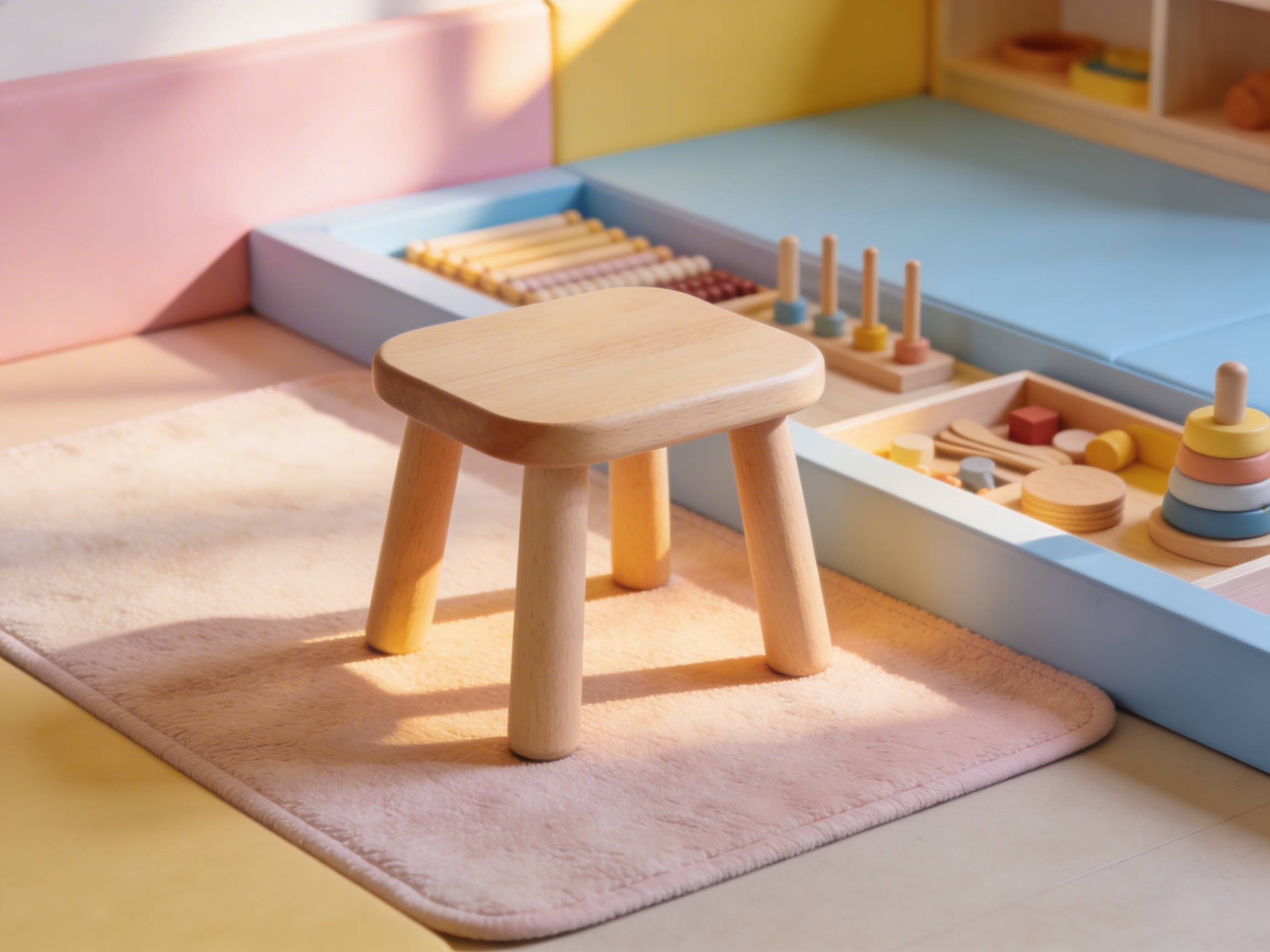 The Toddler Work Stool: Small (30.5 X 20.5 X 16.5 cm) is a Infant & Toddler (0-3) Montessori material designed for children aged 0-3, crafted by Nienhuis Montessori to AMI standards.