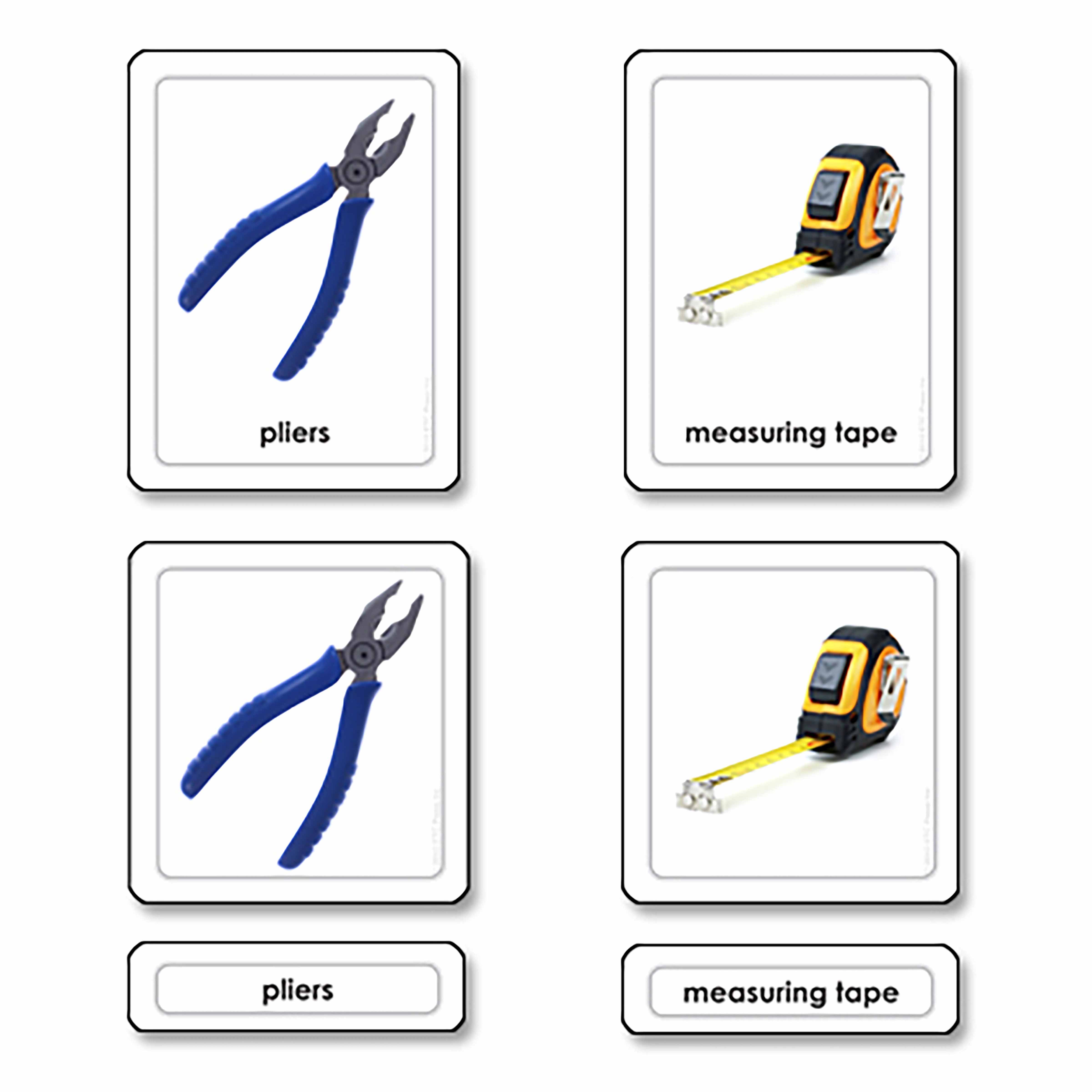 The Tools 3 Part Cards is a Educational Materials Montessori material designed for children aged 3-6, crafted by Nienhuis Montessori to AMI standards.