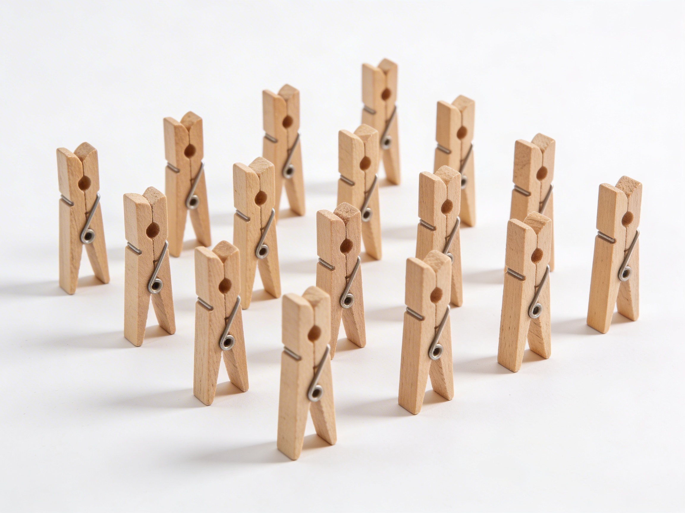 These natural wooden cloth pegs invite young children to explore pinching movements essential for later writing skills. The smooth wooden construction and spring-action mechanism provide just the right amount of resistance for developing hand strength, while the 25-piece set enables extended practice and creative arrangements in practical life activities.