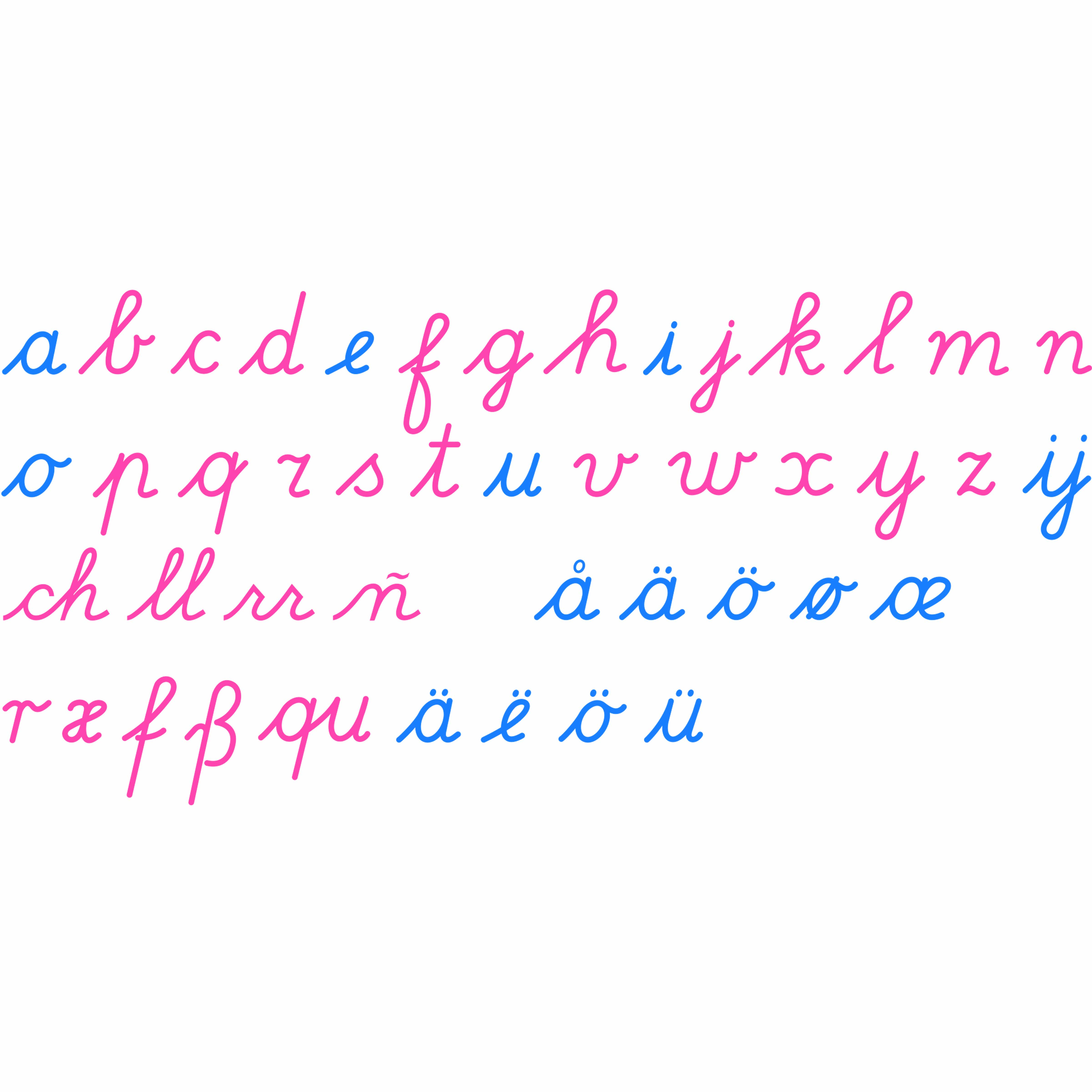 The Wooden Movable Alphabet with international cursive letterforms bridges the gap between a child's desire to communicate and their developing hand coordination. Each wooden letter can be touched, traced, and arranged without requiring the fine motor control needed for pencil writing. The blue vowels and pink consonants create a visual pattern that helps children recognize the two fundamental components of word construction. This cursive movable alphabet specifically prepares children for the flowing movements of connected writing, as each letter's shape naturally leads into the next. The wooden pieces allow unlimited word building attempts without fatigue or frustration. Children can express complex thoughts by arranging these letters long before their hands can form the same letters with a pencil. The tactile experience of handling each carved cursive form reinforces letter recognition through muscle memory. By separating the intellectual challenge of spelling from the physical challenge of writing, the movable alphabet reveals each child's true language capabilities.