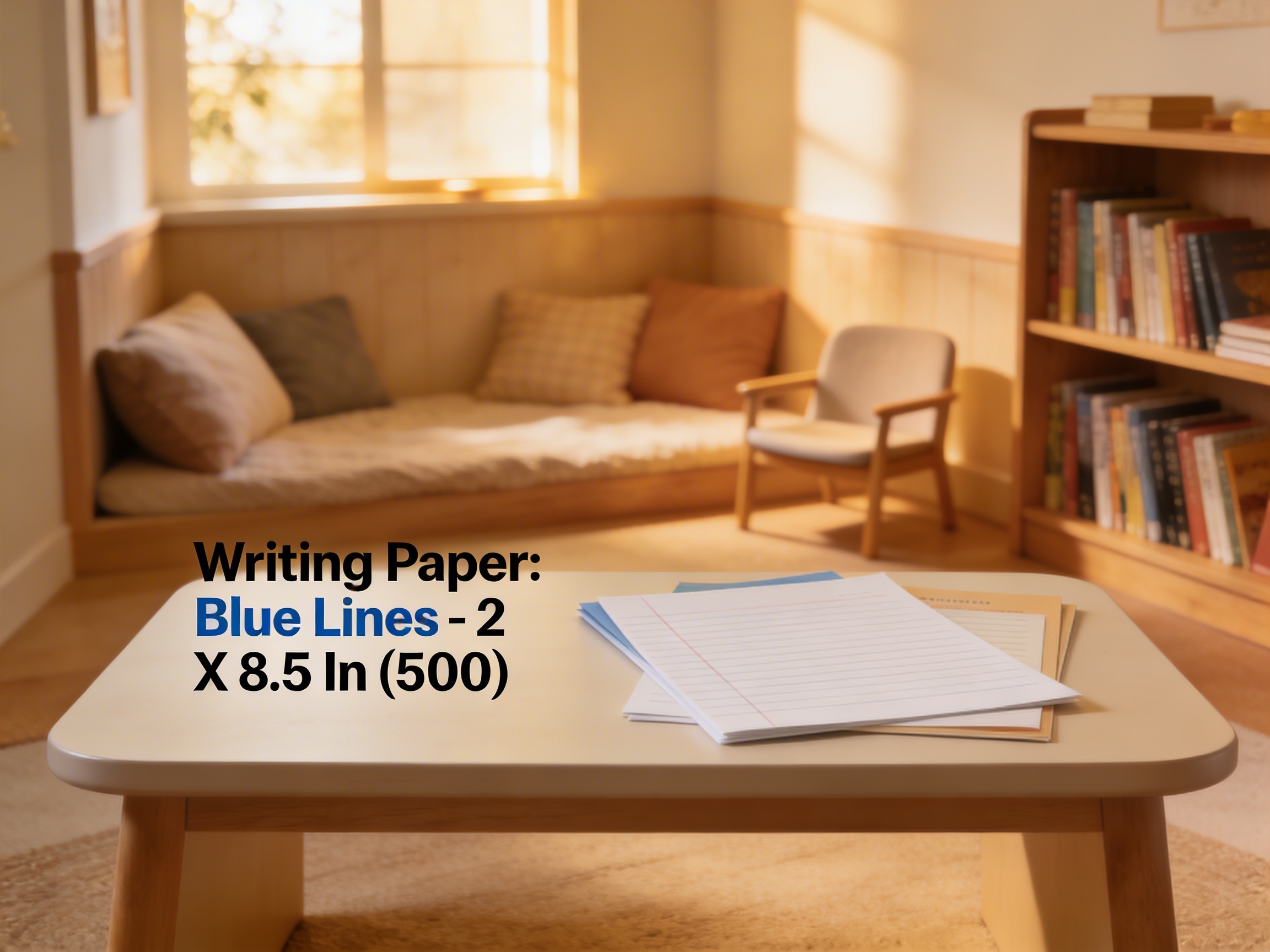 The Writing Paper with Blue Lines serves a precise purpose in the Montessori Language curriculum, offering visual boundaries that help young writers understand spatial relationships on paper. These blue horizontal lines create a structured framework where children can observe how letters sit on, extend above, or drop below the baseline - essential knowledge for developing legible handwriting. The generous 500-sheet supply respects the child's need for repetition, a cornerstone of skill mastery in Montessori education. Each fresh sheet of blue-lined paper presents a new opportunity for practice without the pressure of perfection. The 2 x 8.5 inch format provides ample space for large motor movements natural to three-year-olds while accommodating the gradually refined control of six-year-olds. By offering consistent blue line spacing across hundreds of sheets, this paper becomes a reliable companion throughout the sensitive period for writing, when children spontaneously seek to express their thoughts through written symbols.