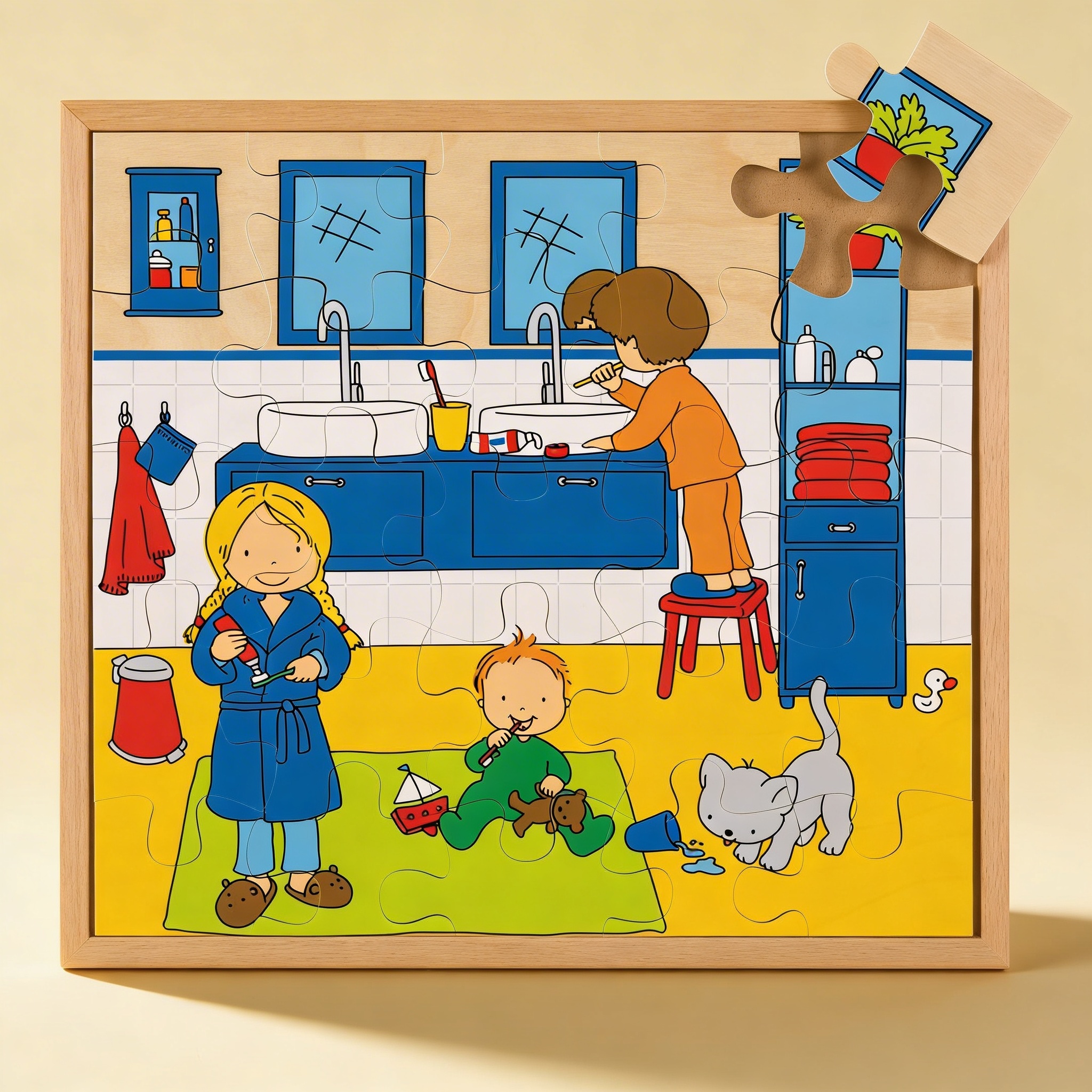 Montessori vzdelávanie uznáva, že praktické životné zručnosti — každodenné aktivity starostlivosti o seba — sú rovnako dôležité ako akademické učenie. Toto puzzle premosťuje medzeru medzi hrou a reálnou kompetenciou. Keď dieťa skladá sekvenciu čistenia zubov, nerieši len puzzle; mentálne nacvičuje dennú rutinu.
